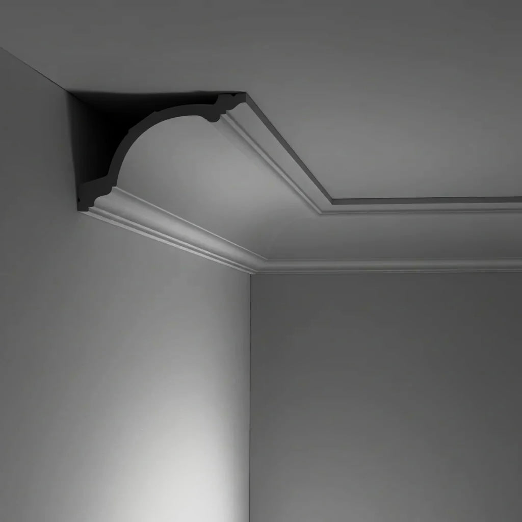 Inspirée par le riche héritage des manoirs anglais, la corniche classique et majestueuse G204 ajoutera du cachet a votre intérieur et permet de souligner le caractère architectural d’une pièce tout en créant une transition fluide entre les murs et le plafond.
