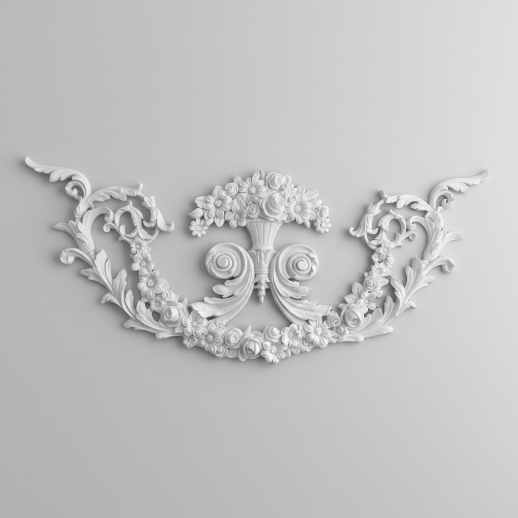 Idéale pour les salons, salles à manger, chambres à coucher, et bureaux, notre moulure centrale est parfaite pour créer des détails architecturaux élégants et donner du caractère à vos murs et plafonds.